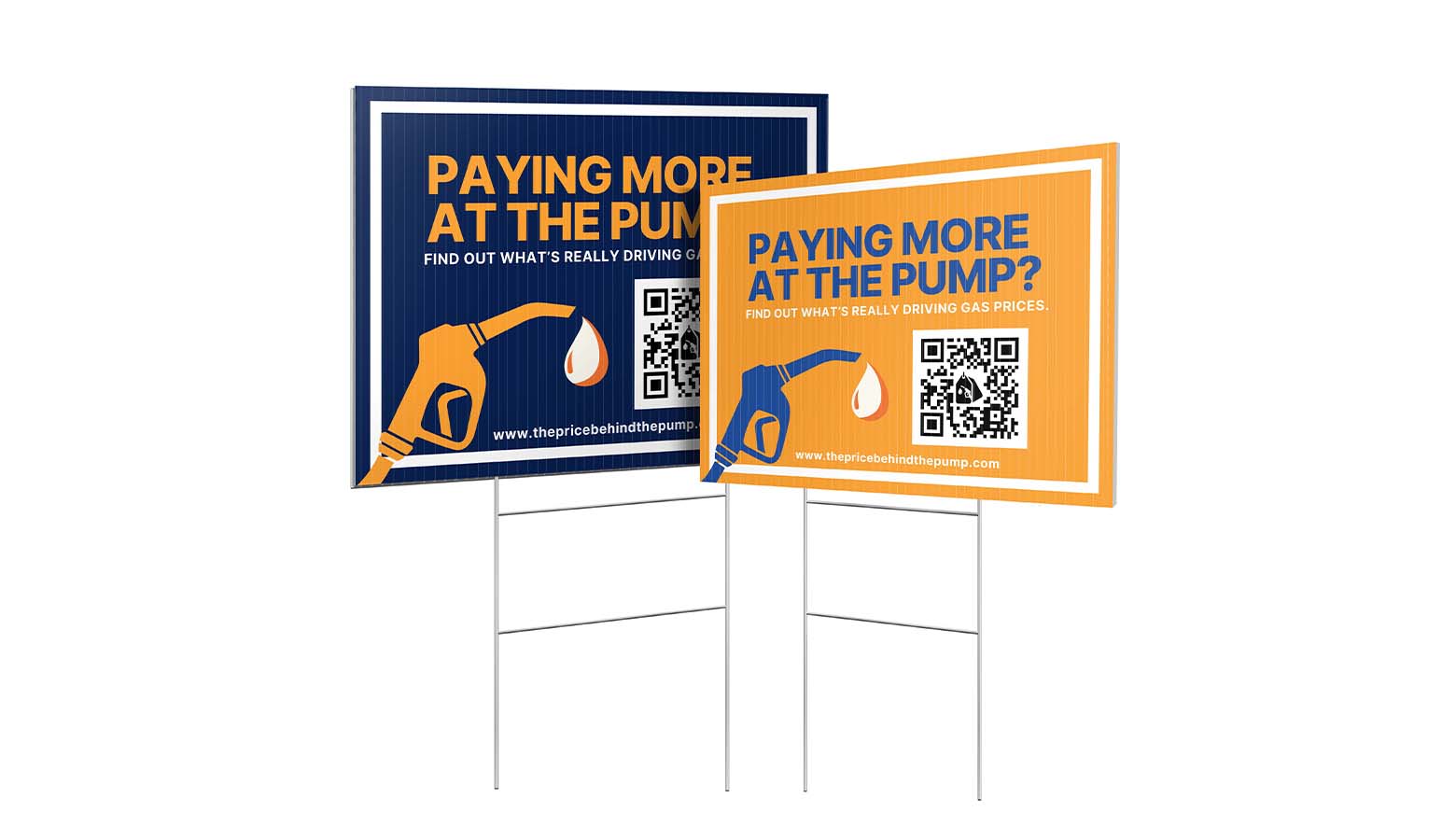 Durable lawn signs with H-frame stakes. Weatherproof, full-color corrugated plastic signs made for outdoor promotions at gas stations. Read More